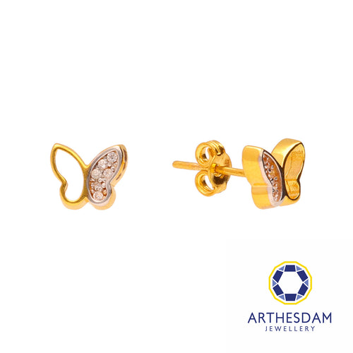 Arthesdam Jewellery 916 Gold Sparkle Studded Butterfly Earrings