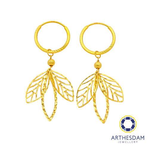 Arthesdam Jewellery 916 Gold Dangling Leaves Hoop Earrings